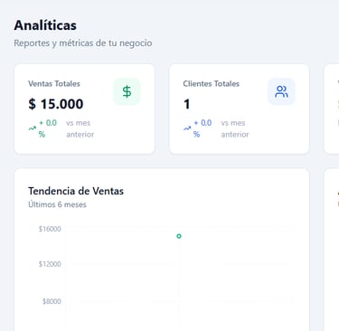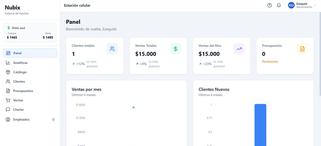 Con Nubix registras cada venta desde tu celular o computadora en segundos. El sistema guarda el cliente, producto, precio. Tenes reportes de pagos por dia, semana, mes y con graficos por producto